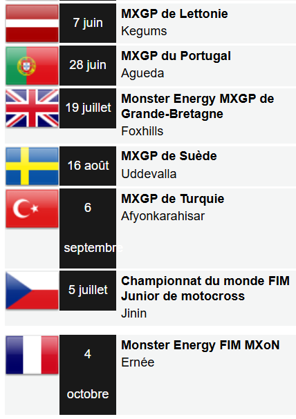 Actualités : https://www.ffmoto.org/actualite/les-perfs-du-week-end-8-black-masson-leblanc-boudesseul-rousseau-vialle-valin-goyer - https://www.ffmoto.org/actualite/championnat-du-monde-mxgp-qui-stoppera-lucas-coenen