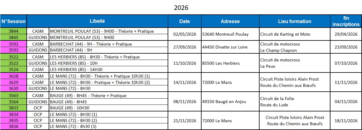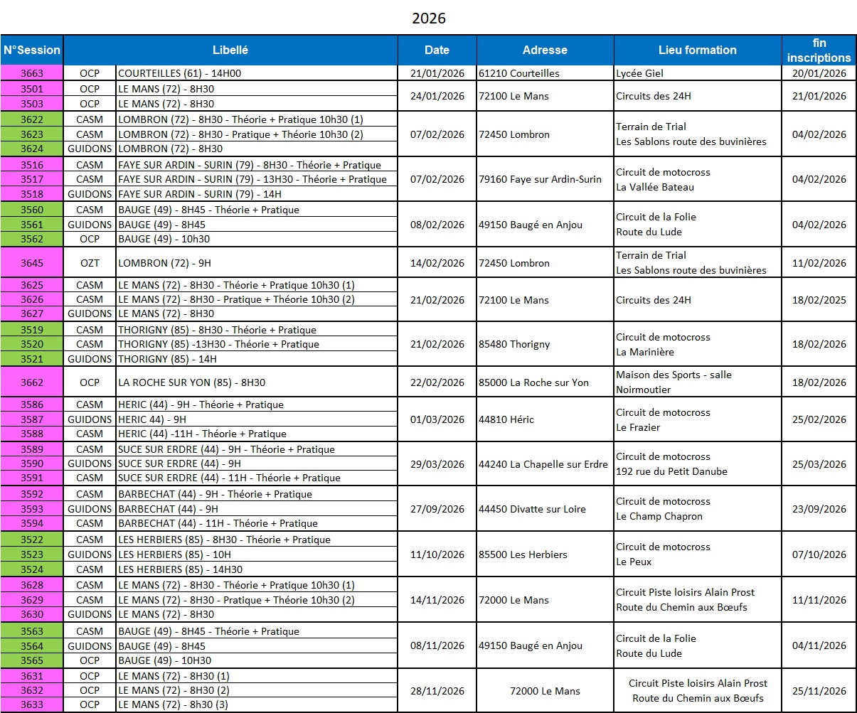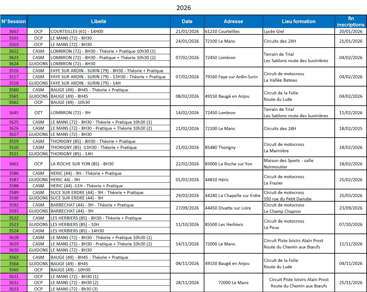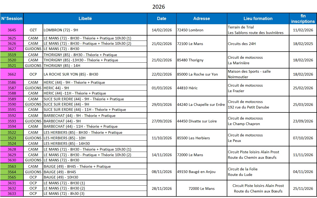 Les autres pilotes devront passer la Théorie et la Pratique, donc venir avec leur moto et équipement à la session.